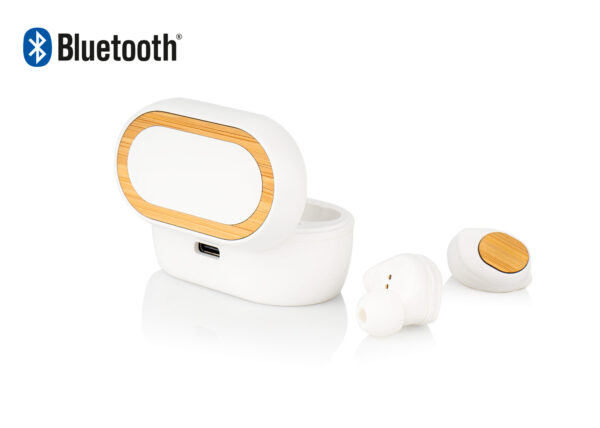 Audífonos Bluetooth 5.0 con diseño ergonómico. Incluye botón táctil en el auricular que permite controlar las acciones con facilidad. Posee unabase de carga con diseño a juego y cable Tipo-C incluido.