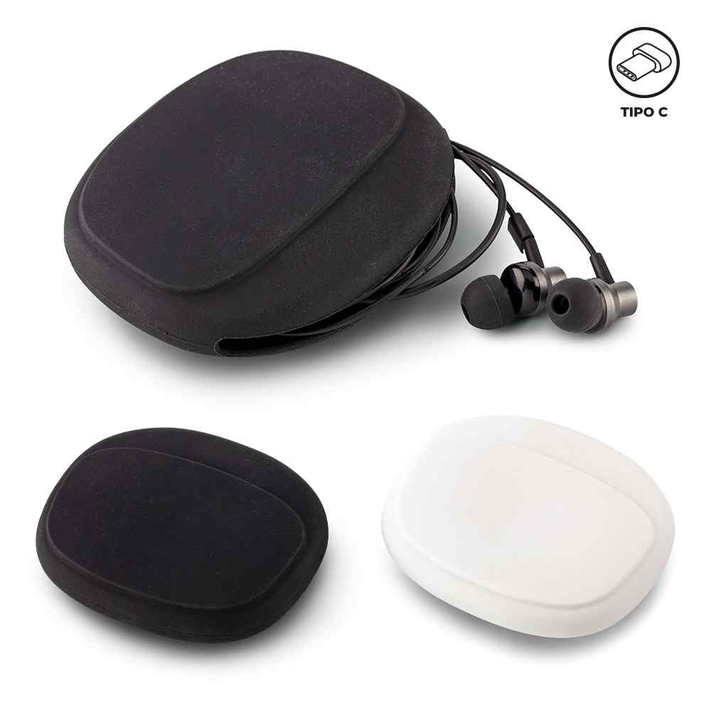 Audífonos plásticos con conexión Tipo C en estuche de silicona. Funcionan como manos libres (control de volumen). Medidas Estuche: 9 cm x 7.5 cm x 1.7 cm. Marca Estuche: 3.5 cm / Tampografía en silicona a una tinta.Ficha Técnica
