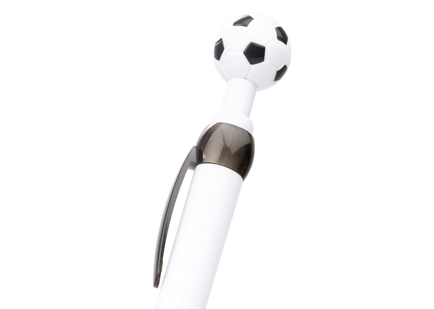 Con barril blanco sólido, clip y punta en acabado traslúcido, este bolígrafo destaca por su empujador con diseño de balón de fútbol. Su mecanismo retráctil lo hace práctico y funcional, ideal para quienes buscan un toque deportivo en sus herramientas de escritura. MATERIAL: Plástico ABS MEDIDAS: Formato: (Alto X Diámetro X Ancho con Clip): (15,6 X Ø 1,2 X 1,4). Peso: 12 gr. ÁREA DE IMPRESIÓN APROXIMADA: Tampo: (6 X 0,7). MARCA: SE SUGIERE: Tampografía bolígrafos plásticos de hasta 5 tintas. EMPAQUE: 1000 Unidades en caja máster de: 31 cm x 20 cm x 48 cm; Peso Bruto: 10 Kg; Peso Neto: 9 Kg EMPAQUE INDIVIDUAL: Bolsa de plástico INVENTARIO: 4988