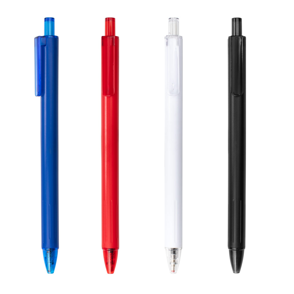 Bolígrafo retráctil con barril de color mate que aporta un acabado moderno y profesional. Cuenta con empujador, clip y punta en acabado transparente, que complementan su diseño funcional. Su tinta semi-gel ofrece una escritura suave y continua, ideal para el uso diario en entornos laborales o académicos. MATERIAL: Plástico ABS MEDIDAS: Formato: (Alto X Diámetro X Ancho con Clip): (14,4 X Ø 0,6 X 0,9). Peso: 7 gr. ÁREA DE IMPRESIÓN APROXIMADA: Tampo: (6 X 0,7). MARCA: SE SUGIERE: Tampografía bolígrafos plásticos de hasta 5 tintas. EMPAQUE: 1000 Unidades en caja máster de: 31 cm x 20 cm x 48 cm; Peso Bruto: 9 Kg; Peso Neto: 8 Kg EMPAQUE INDIVIDUAL: Bolsa de plástico INVENTARIO: 17598
