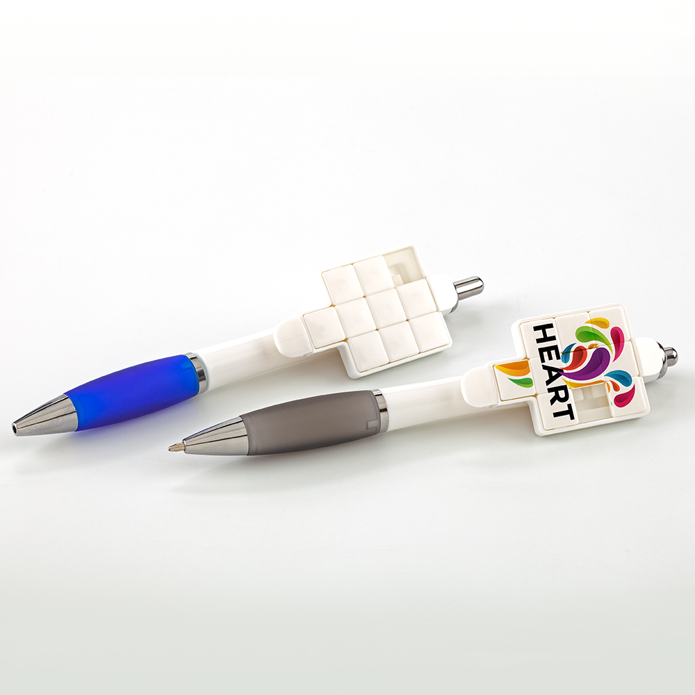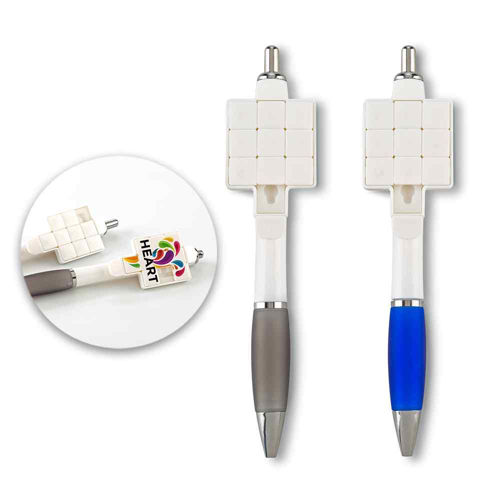 Bolígrafo plástico con mecanismo push. Con rompecabezas.Medidas: 14.5 cm.Marca: 3 cm / Tampografía.Venta mínima y en múltiplos de caja de 50 unidades por color.Ficha Técnica