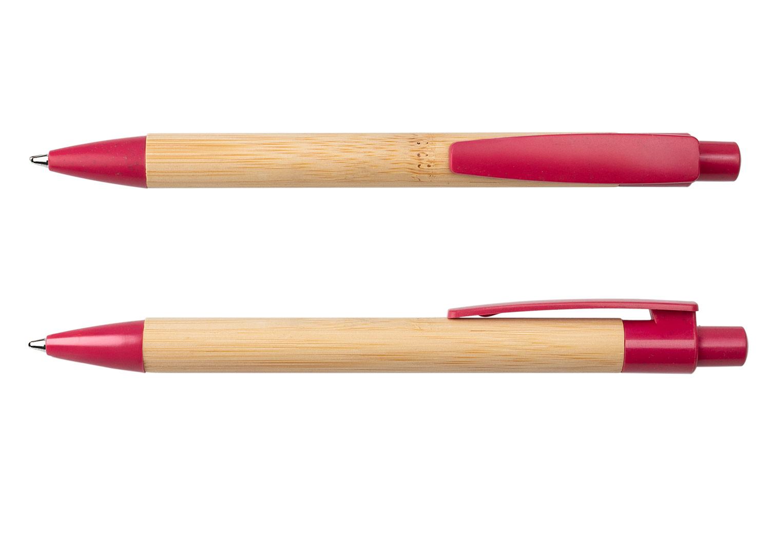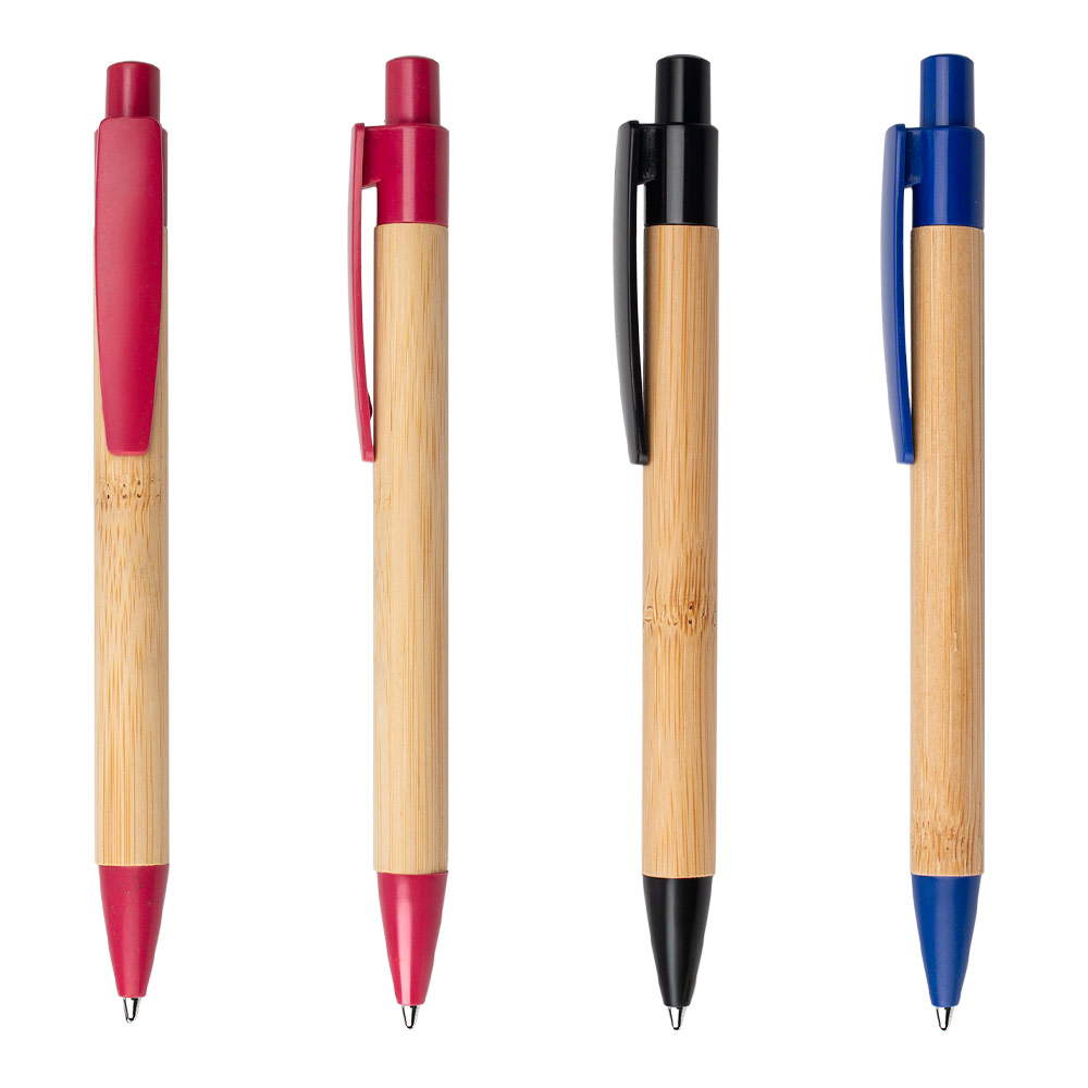 Bolígrafo retráctil con barril de bambú y detalles en paja de trigo de color en el clip, botón y punta, elaborado con materiales reciclados para un diseño sostenible y moderno. Ideal para quienes buscan funcionalidad y compromiso con el medio ambiente, disponible en atractivos tonos que aportan un toque natural y elegante. MATERIAL: Bambú + Paja de trigo MEDIDAS: Formato: (Alto X Diámetro X Ancho con Clip): (14,1 X Ø 0,9 X 1,3). Peso: 9 gr. ÁREA DE IMPRESIÓN APROXIMADA: Tampo: (6 X 0,7). MARCA: SE SUGIERE: Tampografía con tratamiento de hasta 5 tintas. EMPAQUE: 1000 Unidades en caja máster de: 33 cm x 22 cm x 48 cm; Peso Bruto: 9,5 Kg; Peso Neto: 8,5 Kg EMPAQUE INDIVIDUAL: Bolsa de plástico INVENTARIO: 15000