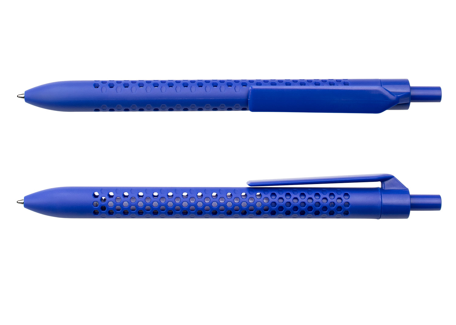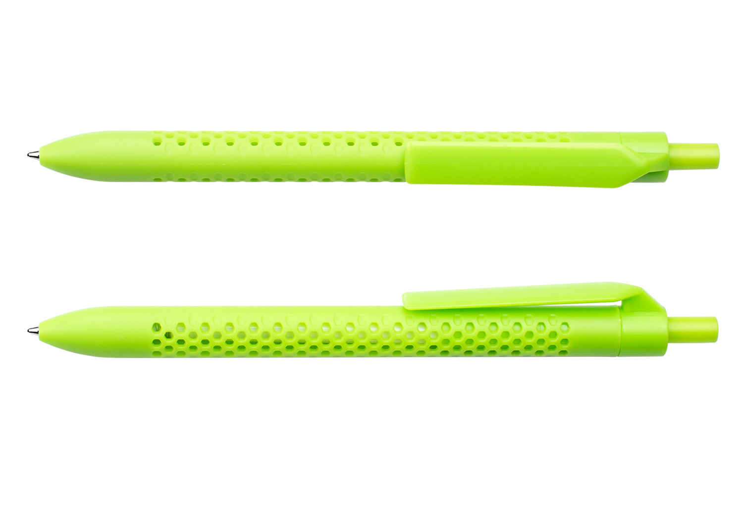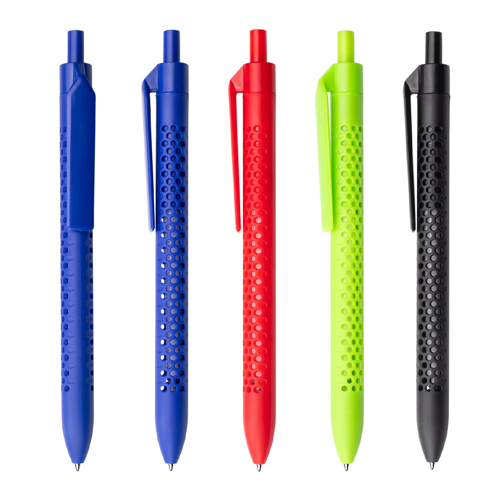 Bolígrafo retráctil con barril de color sólido y diseño perforado que aporta un estilo moderno y funcional. Cuenta con clip y botón del mismo color, lo que complementa su apariencia uniforme. Ideal para uso diario, combina comodidad de escritura con un diseño llamativo. MATERIAL: ABS MEDIDAS: Formato: (Alto X Diámetro X Ancho con Clip): (14,2 X Ø 0,7 X 1,1). Peso: 7 gr. ÁREA DE IMPRESIÓN APROXIMADA: Tampo Clip: (3,5 X 0,6). MARCA: SE SUGIERE: Tampografía bolígrafos plásticos de hasta 5 tintas. EMPAQUE: 1000 Unidades en caja máster de: 32 cm x 19 cm x 42 cm; Peso Bruto: 9..5 Kg; Peso Neto: 8,5 Kg EMPAQUE INDIVIDUAL: Bolsa de plástico INVENTARIO: 19997
