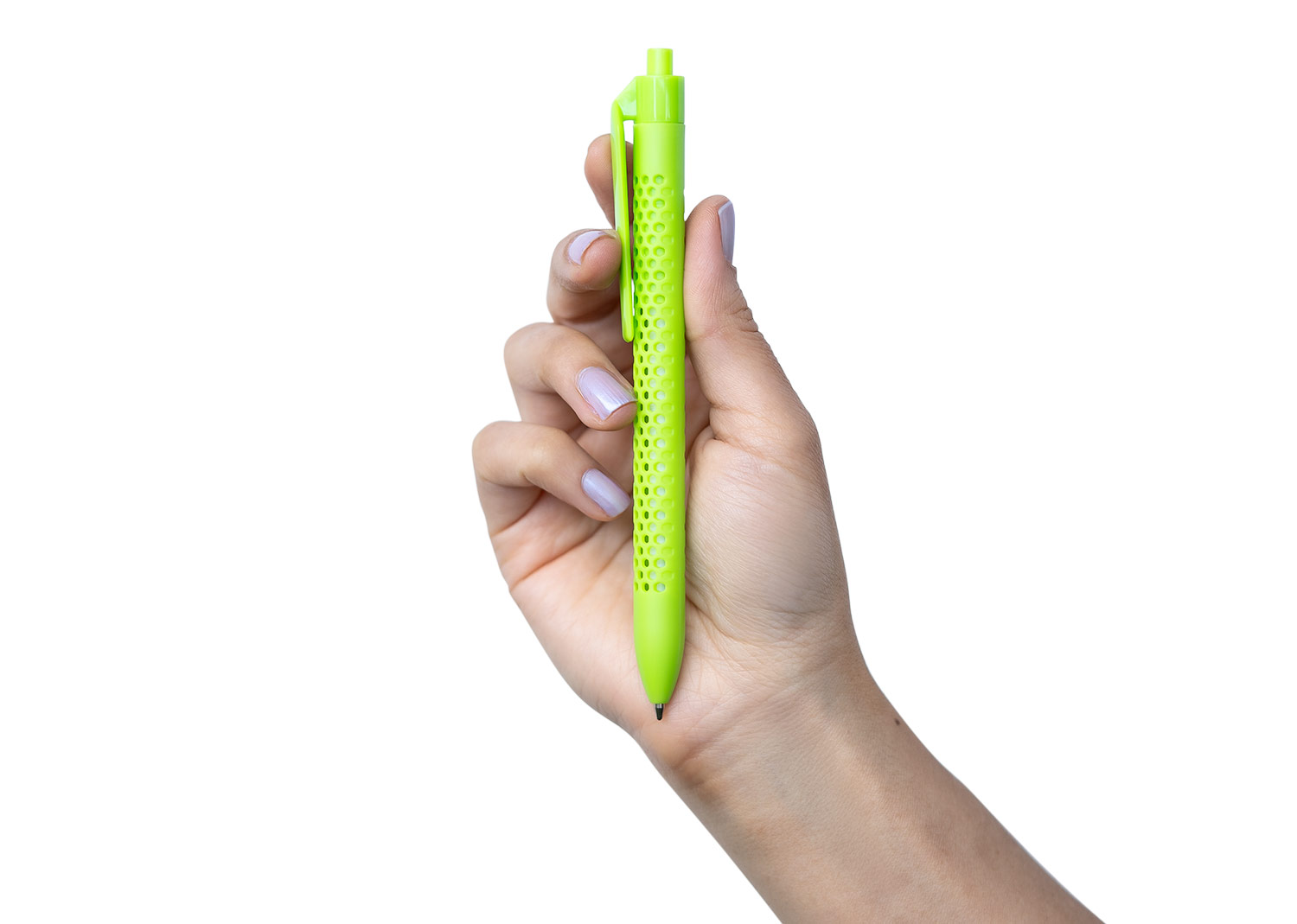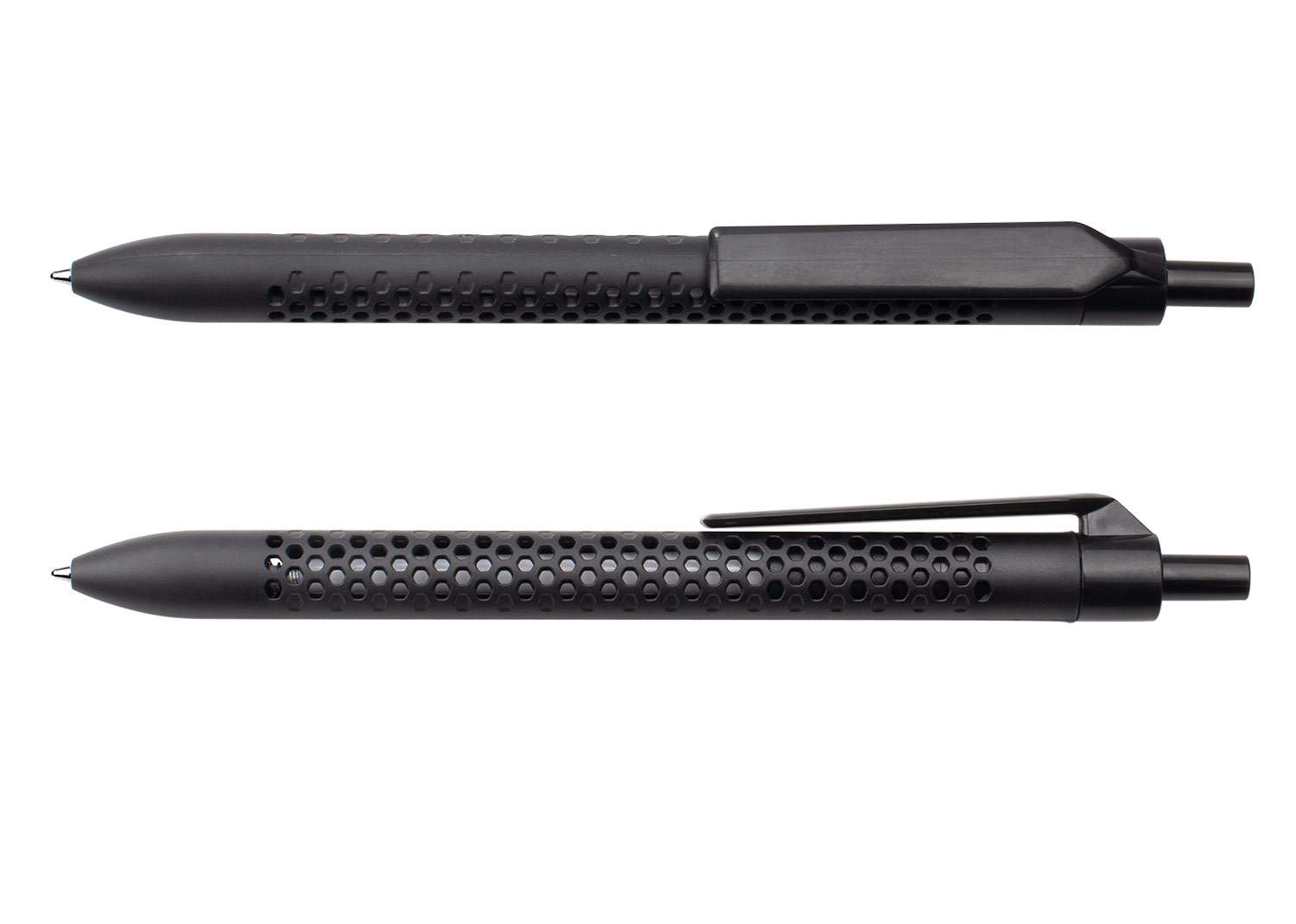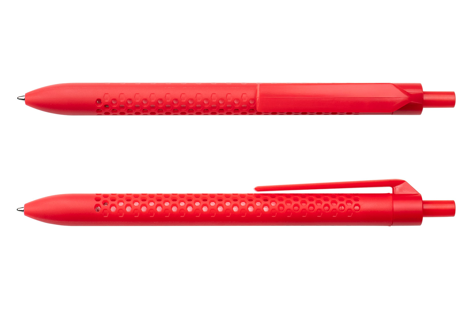 Bolígrafo retráctil con barril de color sólido y diseño perforado que aporta un estilo moderno y funcional. Cuenta con clip y botón del mismo color, lo que complementa su apariencia uniforme. Ideal para uso diario, combina comodidad de escritura con un diseño llamativo. MATERIAL: ABS MEDIDAS: Formato: (Alto X Diámetro X Ancho con Clip): (14,2 X Ø 0,7 X 1,1). Peso: 7 gr. ÁREA DE IMPRESIÓN APROXIMADA: Tampo Clip: (3,5 X 0,6). MARCA: SE SUGIERE: Tampografía bolígrafos plásticos de hasta 5 tintas. EMPAQUE: 1000 Unidades en caja máster de: 32 cm x 19 cm x 42 cm; Peso Bruto: 9..5 Kg; Peso Neto: 8,5 Kg EMPAQUE INDIVIDUAL: Bolsa de plástico INVENTARIO: 19997