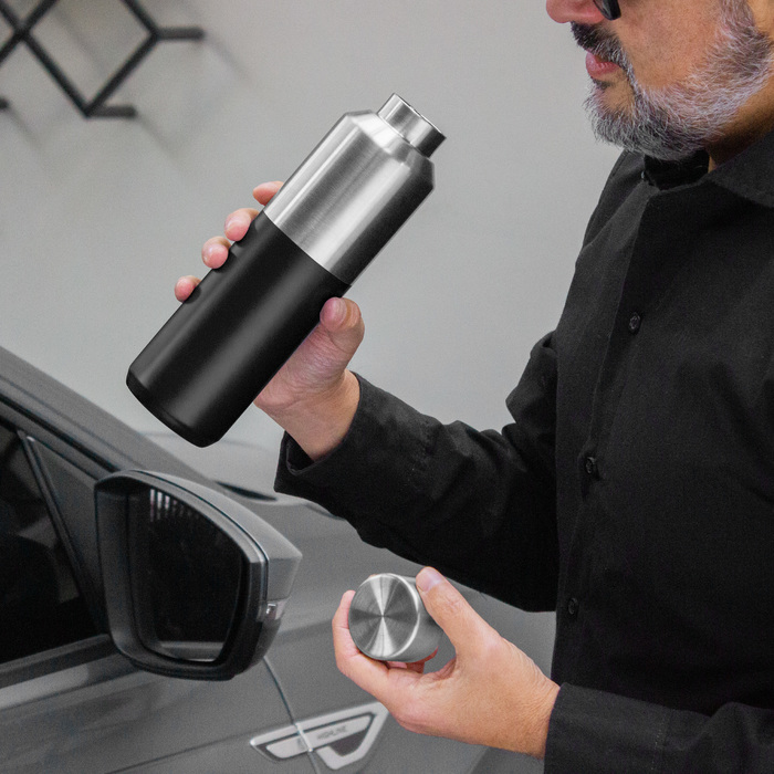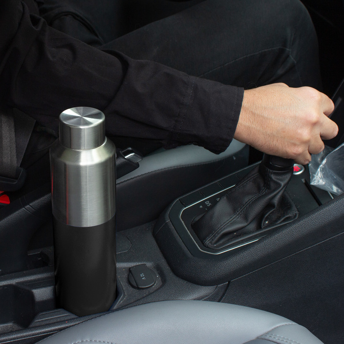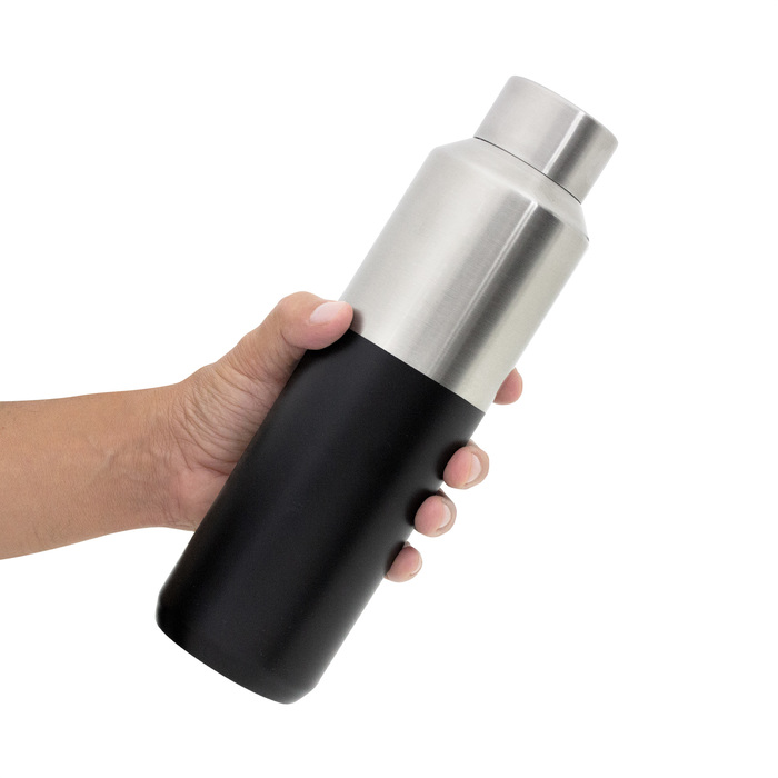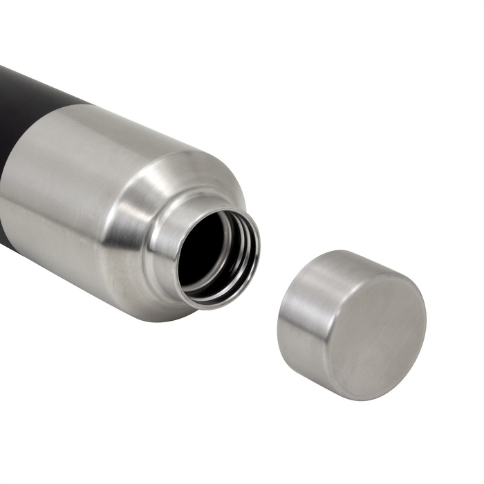 Botella doble pared, sellada al vacío. Tecnología vacuum. Interior de acero 304 y exterior de acero 201. Tapa a rosca de acero 201 con anillo de silicona. Pintura acabado mate en parte inferior. Mantiene por más de 12 hs la temperatura de las bebidas calientes y 24 hs de las bebidas frías.