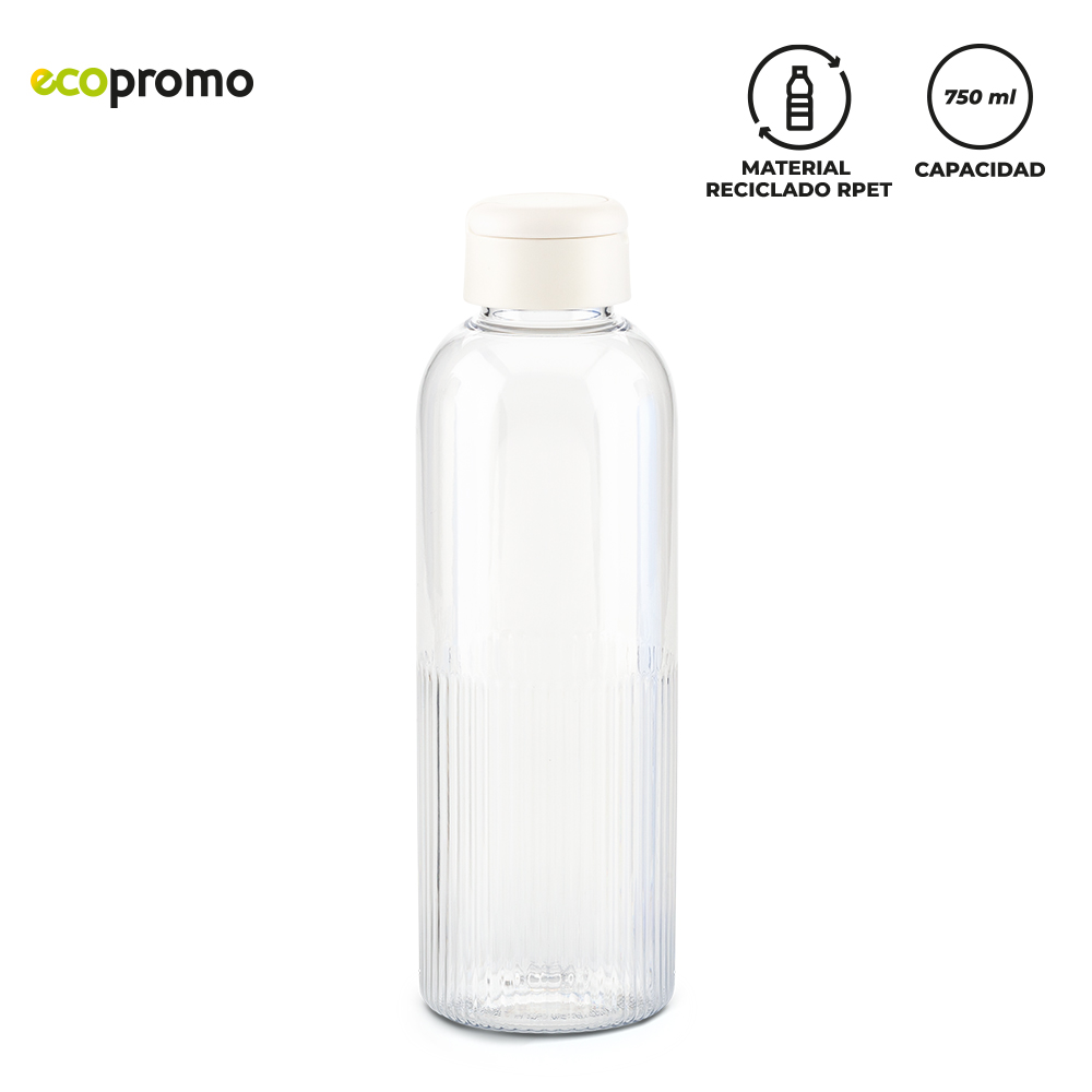 Botilito plástico reciclado RPET.Tapa rosca.Medidas: 23 cm x 7 cm.Marca: 5 cm / Tampografía.Ficha Técnica