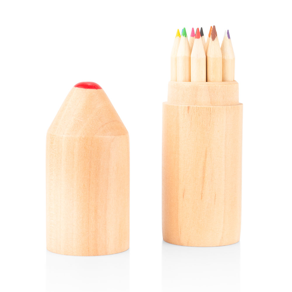Este juego incluye 12 lápices de colores (8,7 X Ø 0,3) presentados en una caja de madera, ideal para mantenerlos organizados y protegidos. Su formato compacto facilita el transporte y almacenamiento, ofreciendo una solución práctica para actividades creativas dentro y fuera del entorno laboral. MATERIAL: Madera MEDIDAS: Formato: (Alto X Diámetro): Con Tapa: (13,8 X Ø 2,8). Sin Tapa: (7,6 X Ø 2,8). Peso: 63 gr. ÁREA DE IMPRESIÓN APROXIMADA: Tampo: (2,5 X 4). MARCA: SE SUGIERE: Tampografía variedades hasta 5 tintas. EMPAQUE: 192 Unidades en caja máster de: 33 cm x 31 cm x 48,5 cm; Peso Bruto: 15 Kg; Peso Neto: 14 Kg EMPAQUE INDIVIDUAL: Bolsa de plástico INVENTARIO: 2101