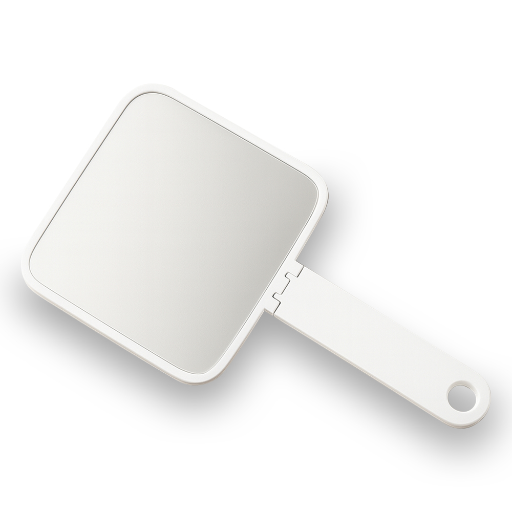 Espejo plástico con mango plegable.Medidas: 9 cm x 9 cm.Marca: 4 cm / Tampografía.Ficha Técnica