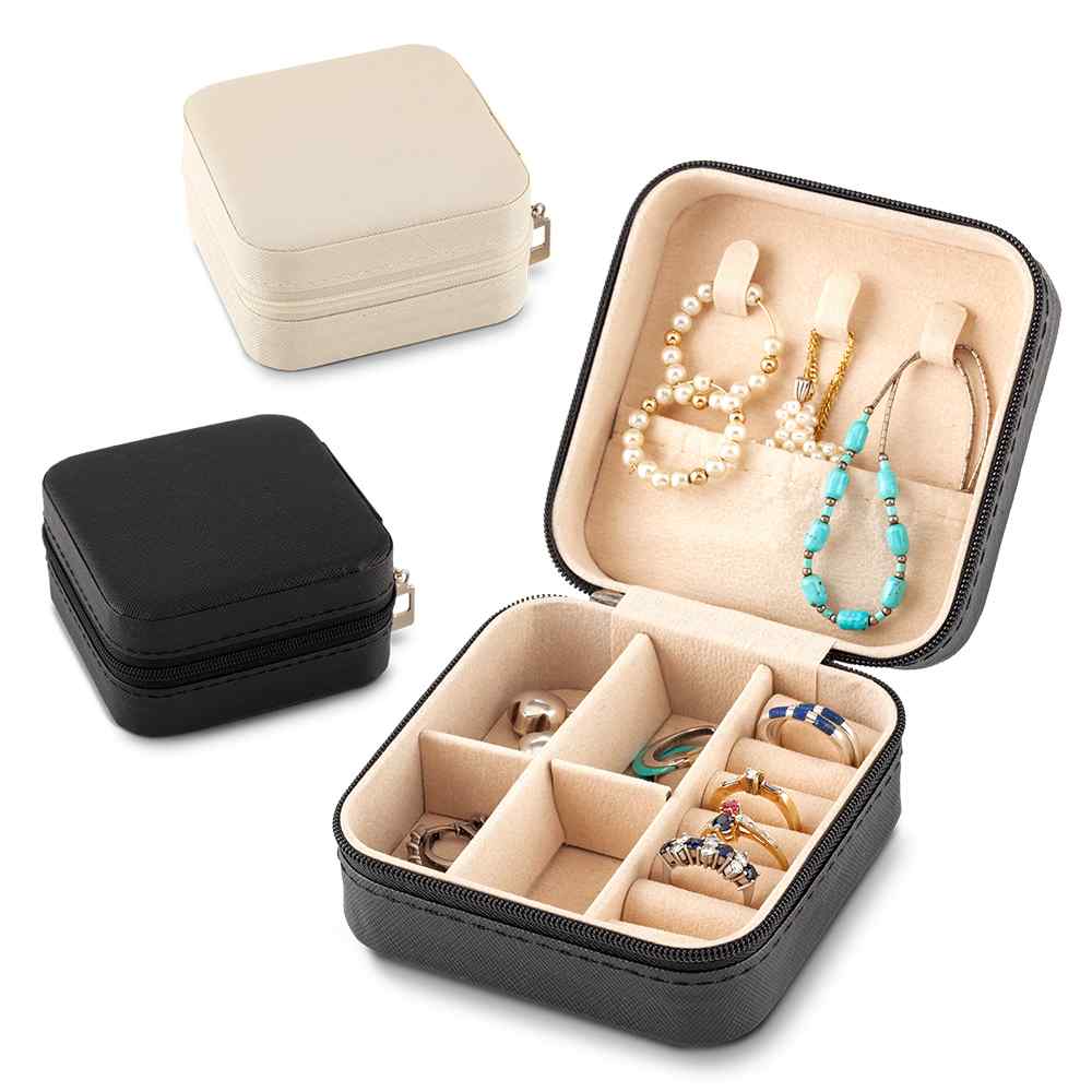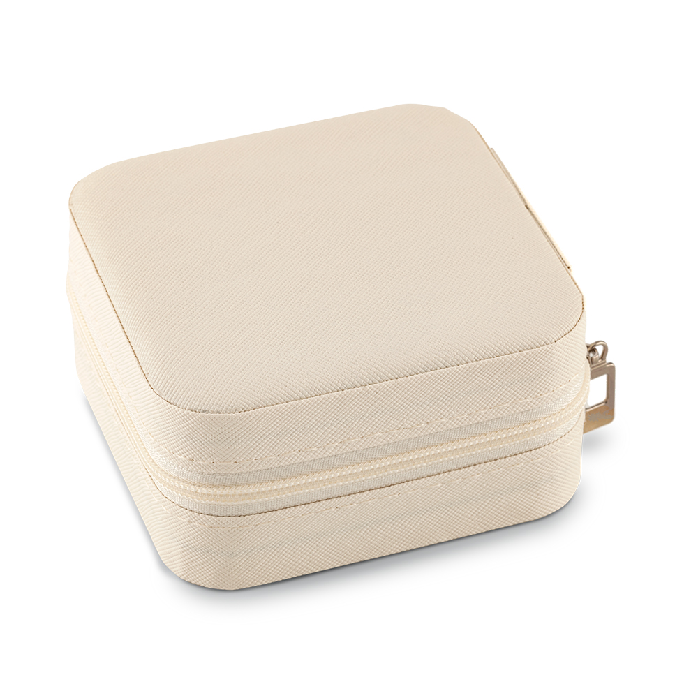 Joyero en imitación cuero con cremallera. La parte