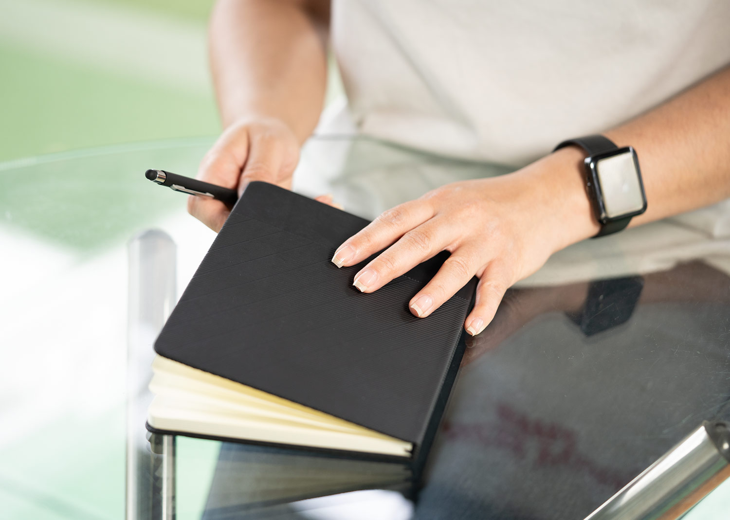 Libreta de diseño profesional con cubierta frontal en PU térmico grabado con rayas diagonales y cubierta trasera en PU termo, que le otorgan un acabado elegante y resistente. Contiene 80 hojas interiores de papel rayado de 70 g/m², ideales para escritura diaria. Además, incluye una cinta marcadora y una banda elástica para mantenerla cerrada de forma segura. MATERIAL: PU + Papel 70 gr MEDIDAS: Formato: (Ancho X Alto X Profundo): (14,7 X 21,1 X 1,1). Peso: 244 gr. ÁREA DE IMPRESIÓN APROXIMADA: Tampo: (7 X 3,5). MARCA: SE SUGIERE: Tampografía variedades hasta 5 tintas. EMPAQUE: 50 Unidades en caja máster de: 33 cm x 24 cm x 40 cm; Peso Bruto: 14 Kg; Peso Neto: 13 Kg EMPAQUE INDIVIDUAL: Bolsa opp INVENTARIO: 10000