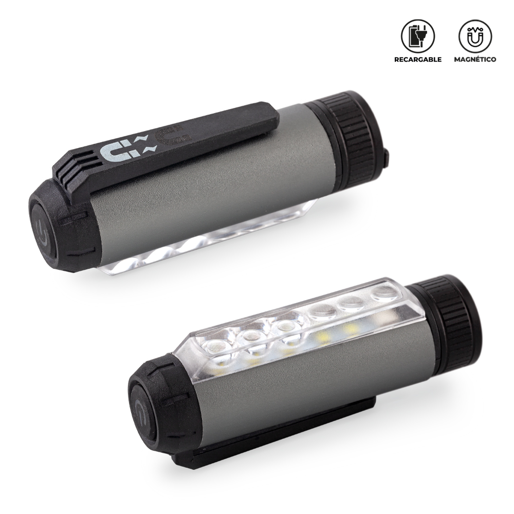 Linterna en aluminio con 4 LEDS y 4 potencias diferentes de luz.Con pila recargable de 500 mAh.Balaca con base giratoria de 360° para usarla en la cabeza.Incluye cable Tipo C para carga. Empaque caja individual.Medidas: 8 cm x 2 cm.Marca: 4 cm / Láser.Ficha Técnica
