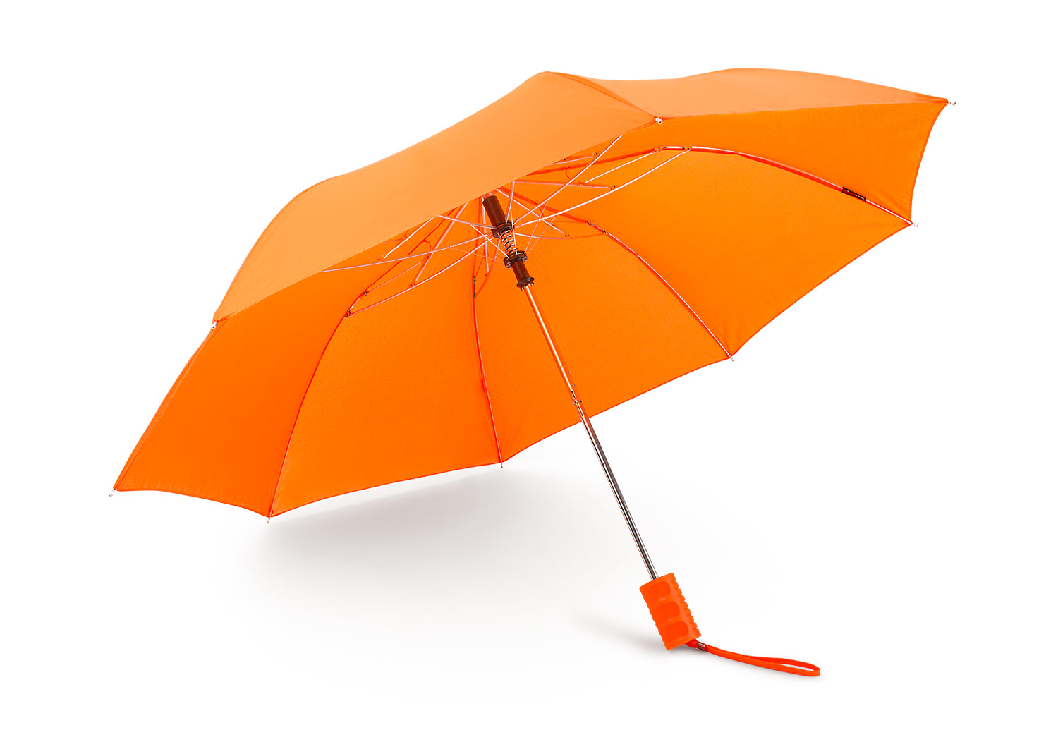 Paraguas tipo Golf. Apertura automática y cierre manual. Mango recto del mismo color del paraguas.