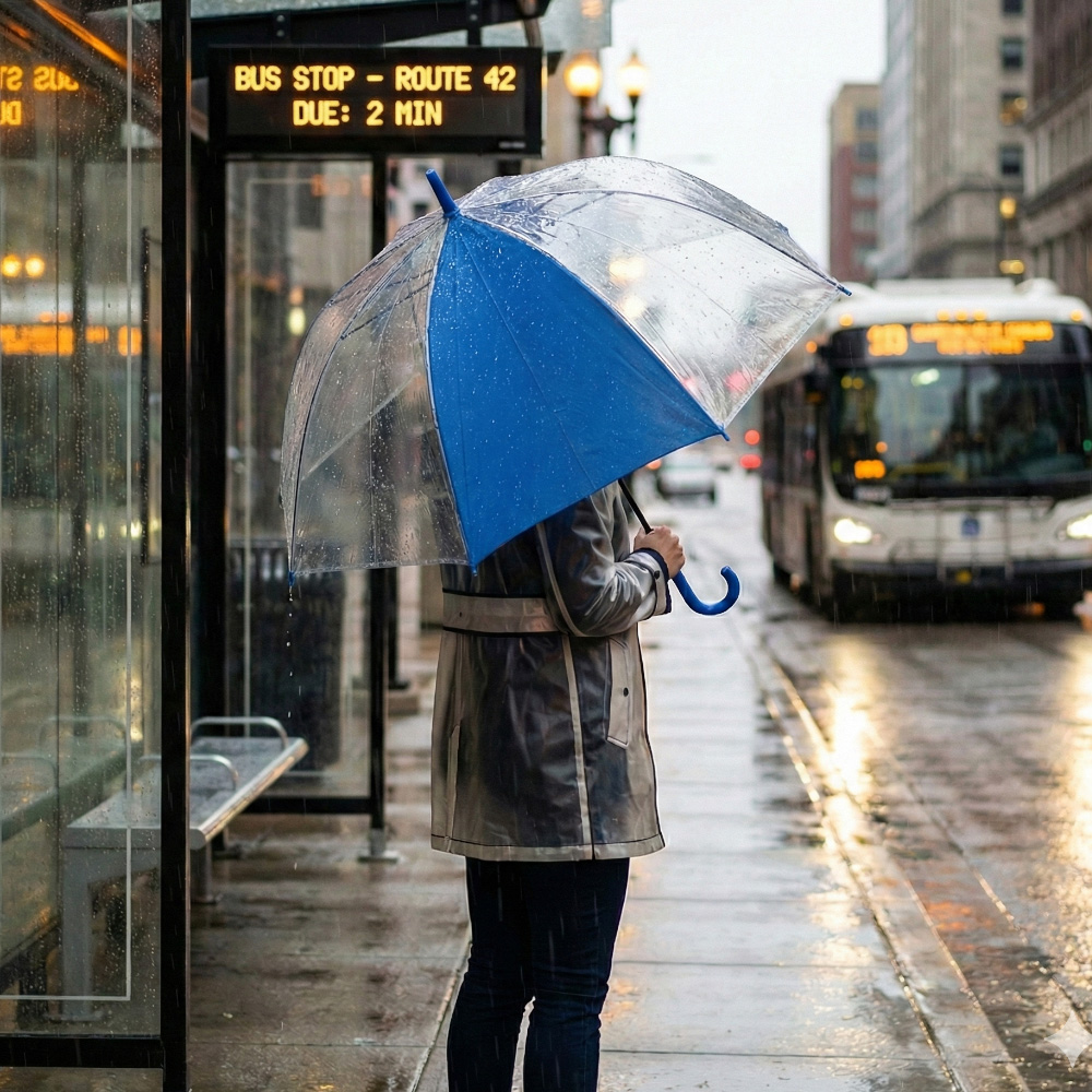 Un panel en poliéster pongee y siete paneles en plástico POE. Paraguas con mayor cobertura y visibilidad al caminar. Apertura y cierre manual. Mango curvo en caucho y herraje metálico con fibra de vidrio.Medidas: 23″ – Casco: 32.5 cm. Largo: 83.5 cm. Cobertura: 120.5 cm.Marca: Máximo 20cm / Screen.Ficha Tecnica