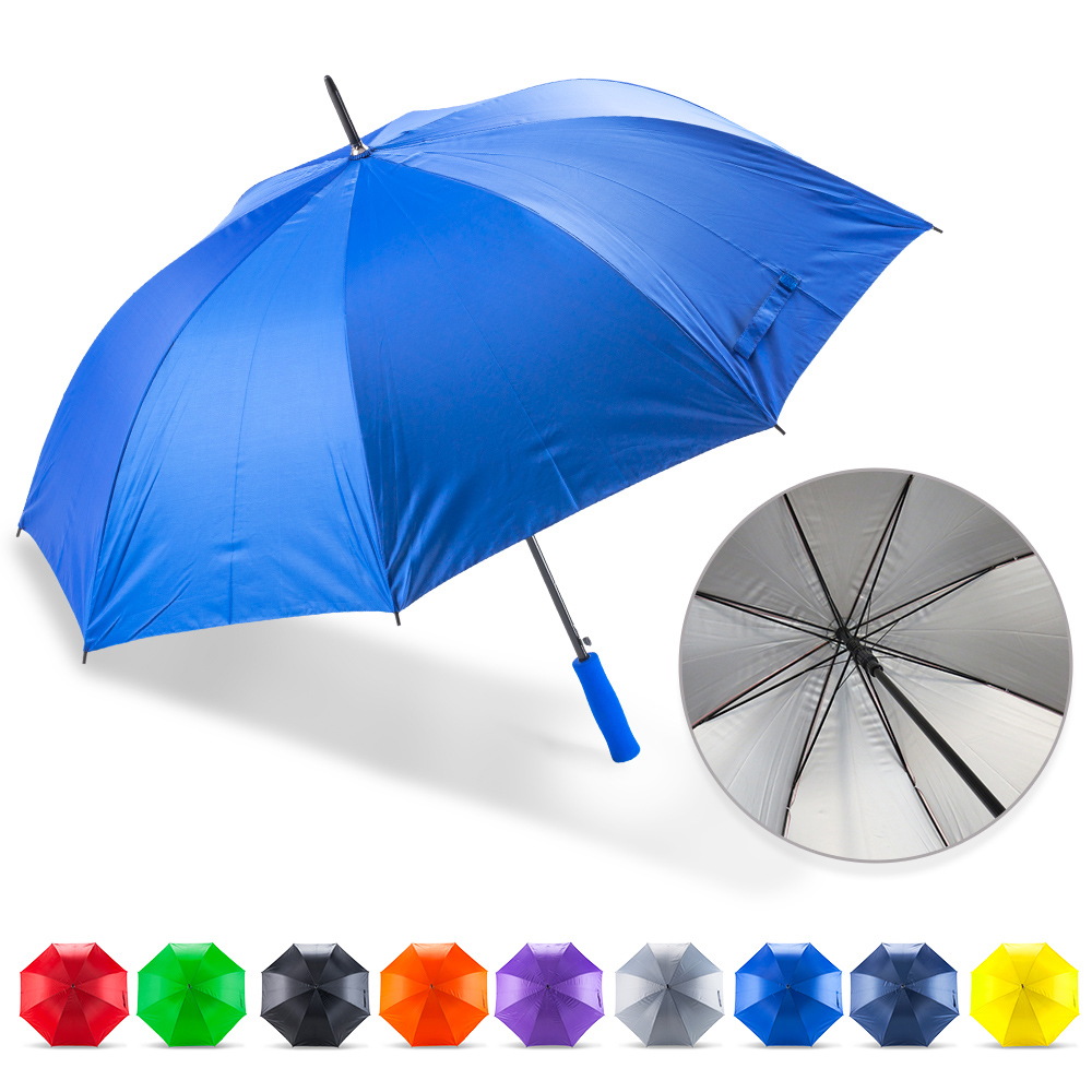 Poliéster, interior plateado. Mango en espuma y herraje metálico. 8 Cascos. Semiautomático.Medidas: 27” Cobertura: 120 cm Casco: 45 cm ancho. Largo total: 92 cmMarca: 25 cm / ScreenNota importante: Para el color blanco debido a la transparencia del material y al acabado metalizado interno, el tono se verá grisáceo.