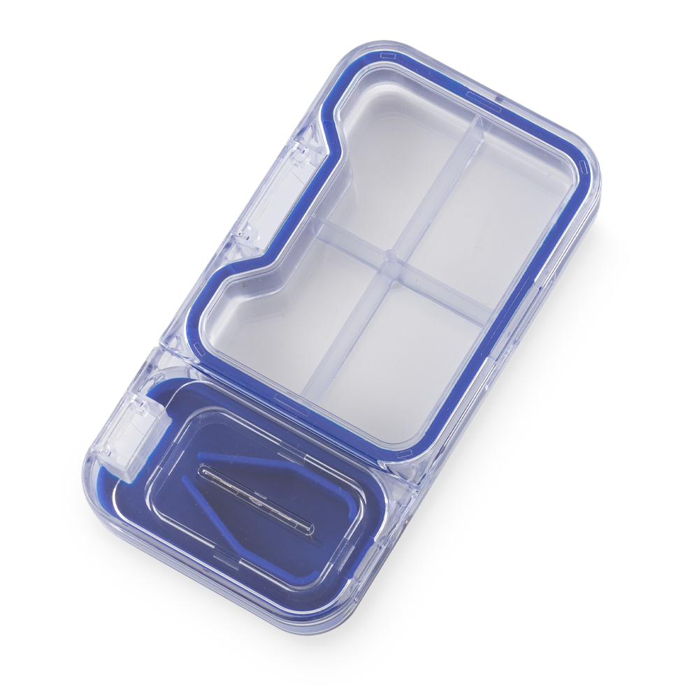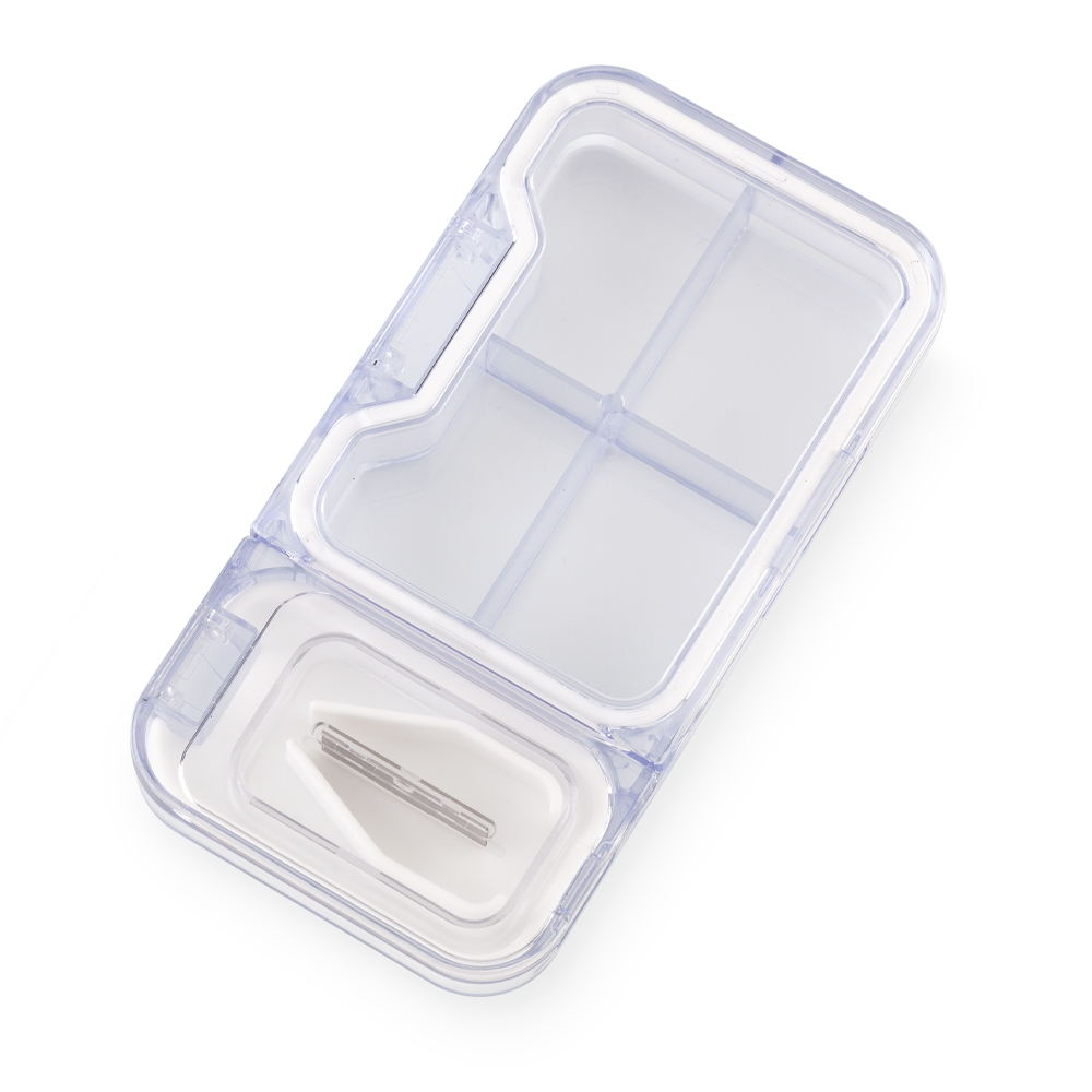 Pastillero plástico con cortador y cuatro