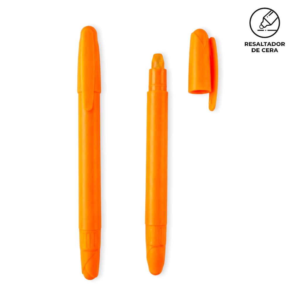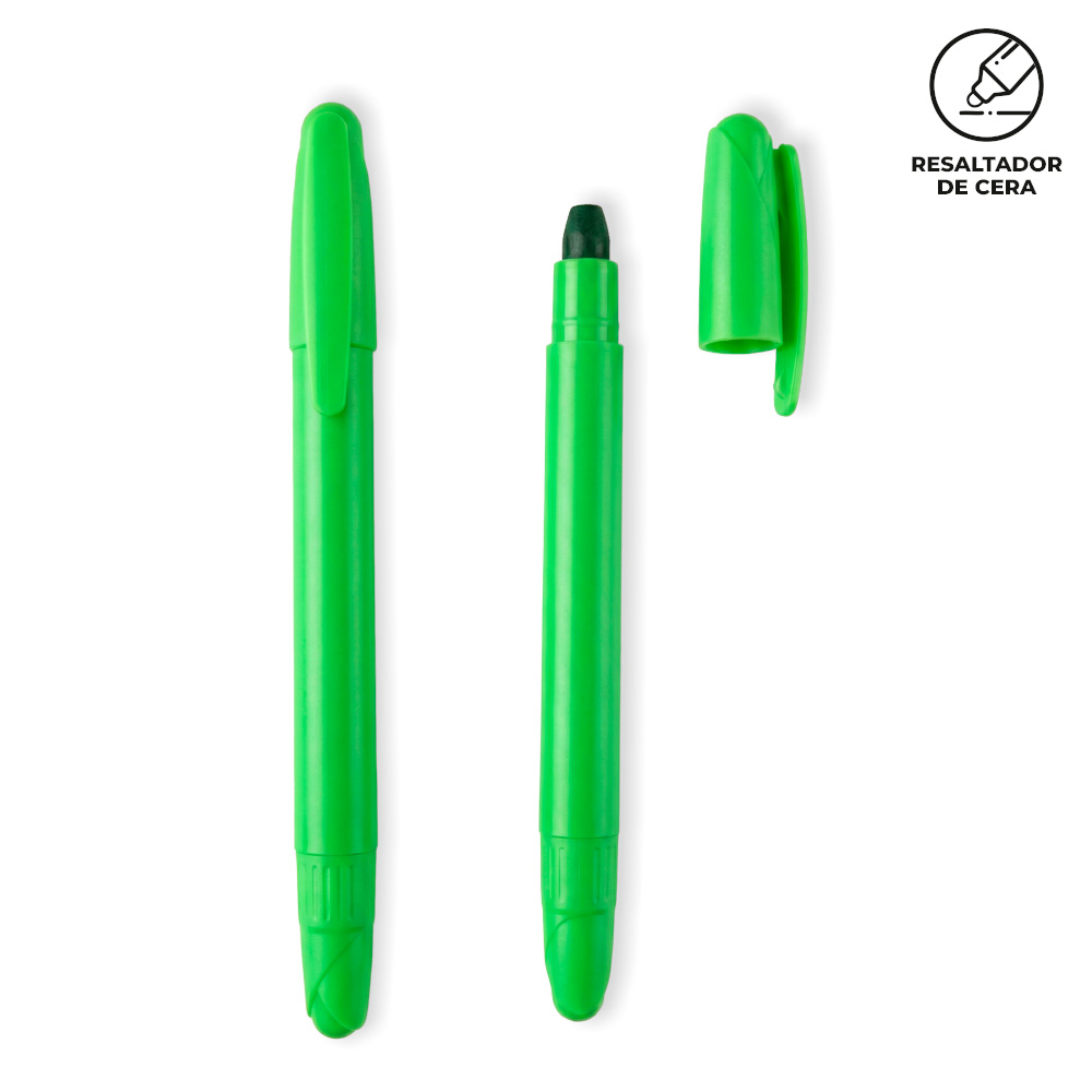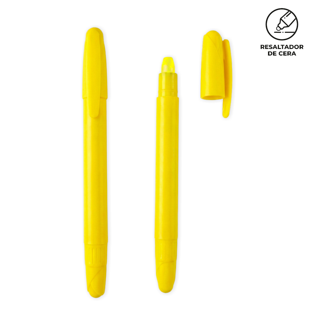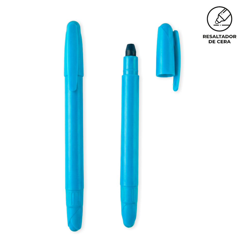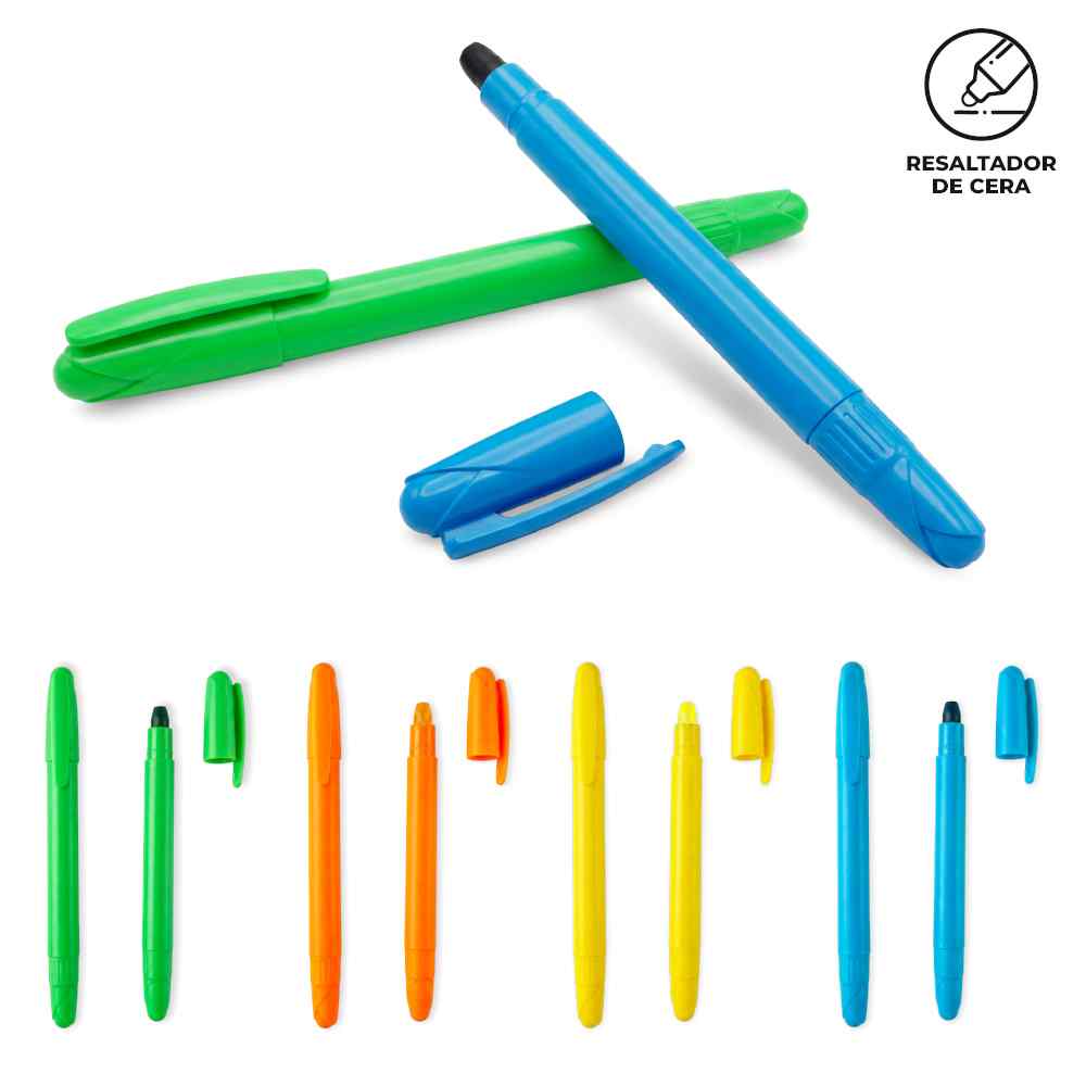 Resaltador plástico en cera. No se seca.Medidas: 13 cm.Marca: 3 cm / Tampografía con tratamiento.Ficha Tecnica