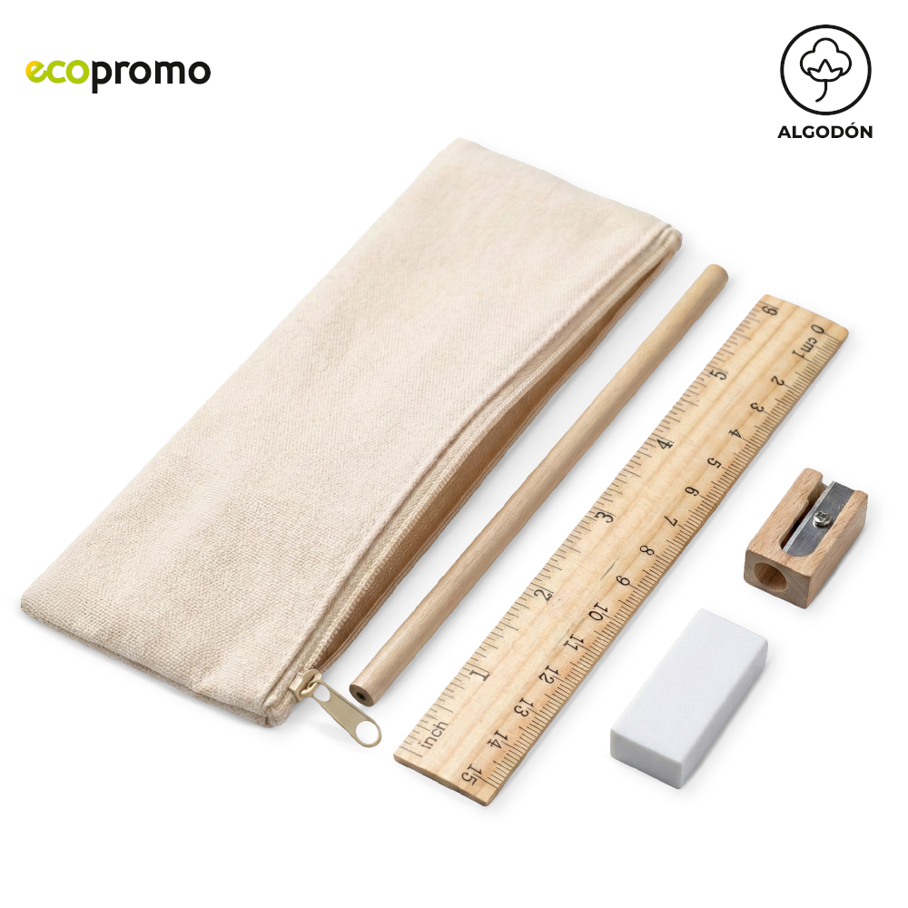 Cartuchera en algodón. Incluye 1 lápiz, regla de 15 cm, tajalápiz y borrador. Con cartuchera en algodón. Medidas: 19.5 cm x 7 cm.Marca: 8 cm / Screen.Ficha Tecnica
