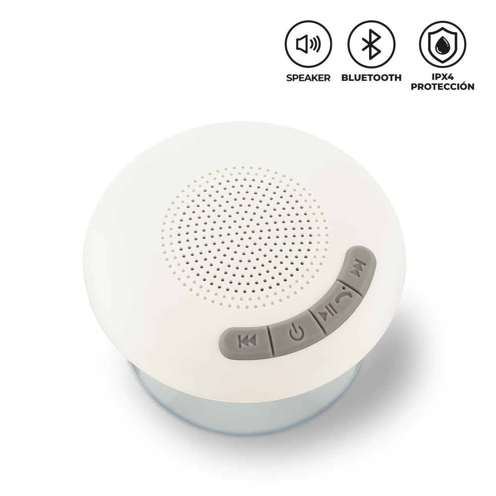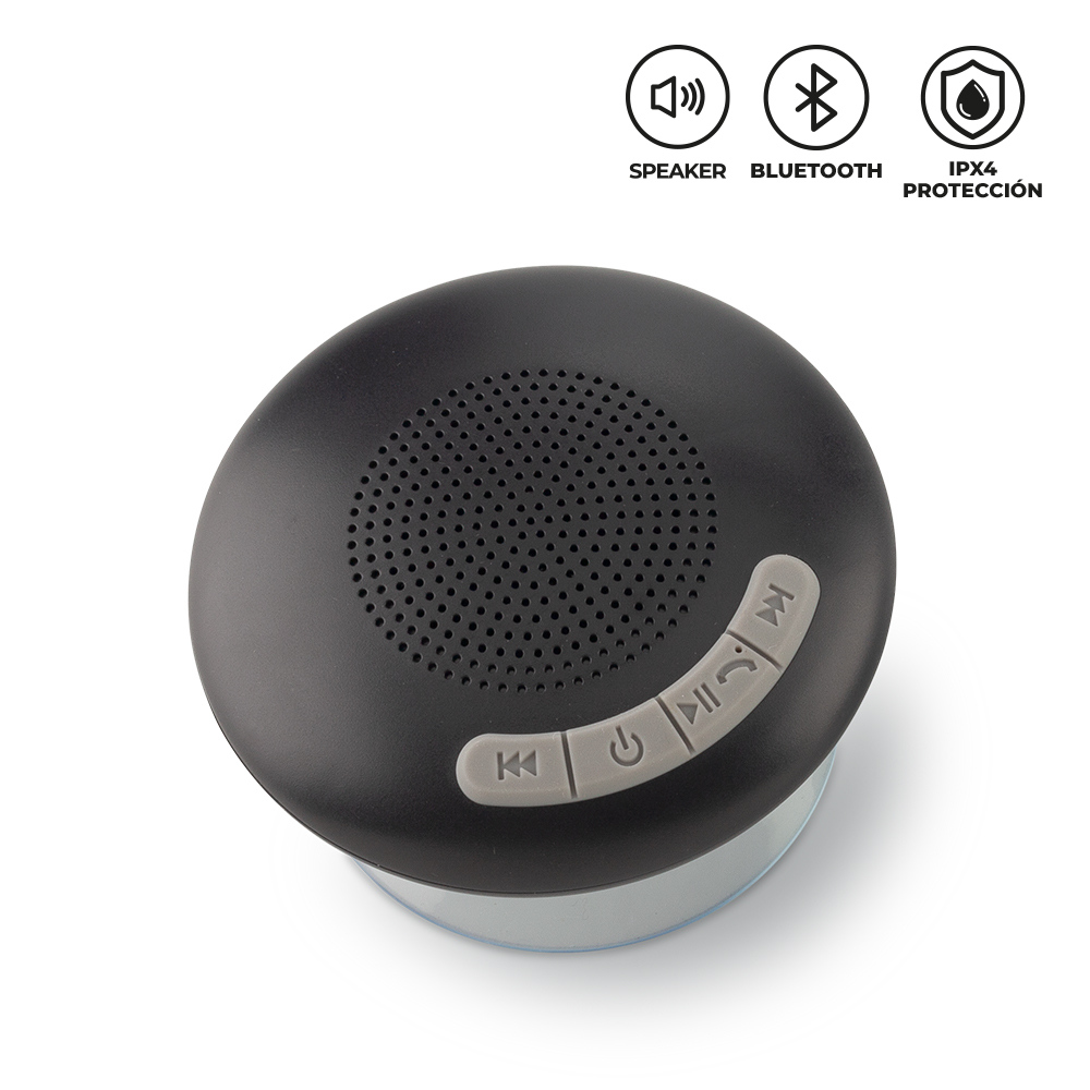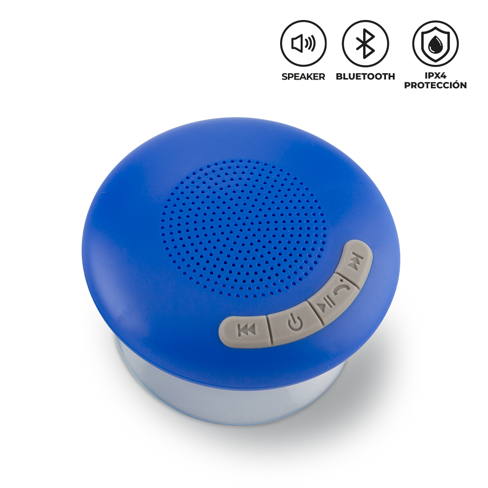 Speaker Bluetooth plástico con chupa. Resistente al agua. Potencia: 3W. Capacidad de la batería: 300 mAh. Tiempo de funcionamiento: 2 horas aprox. Rango de conexión: 10 mt. Empaque caja individual. Medidas: 5 cm x 9.5 cm diámetro. Marca: 2 cm / Tampografía.Ficha Técnica