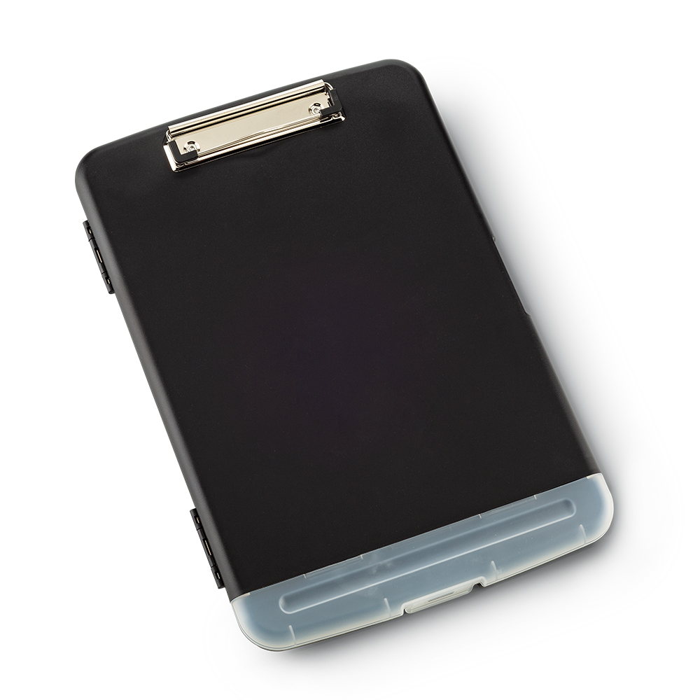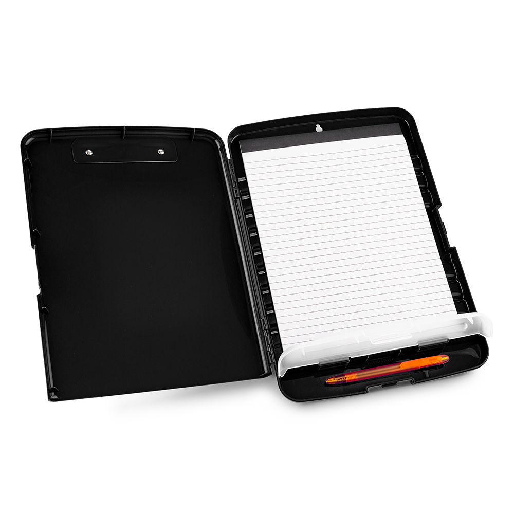 para hojas y otro para bolígrafos.Con clip metálico.Medidas: 36 cm x 24.5 cm x 3 cm.Marca: 12 cm / Screen.Ficha Técnica